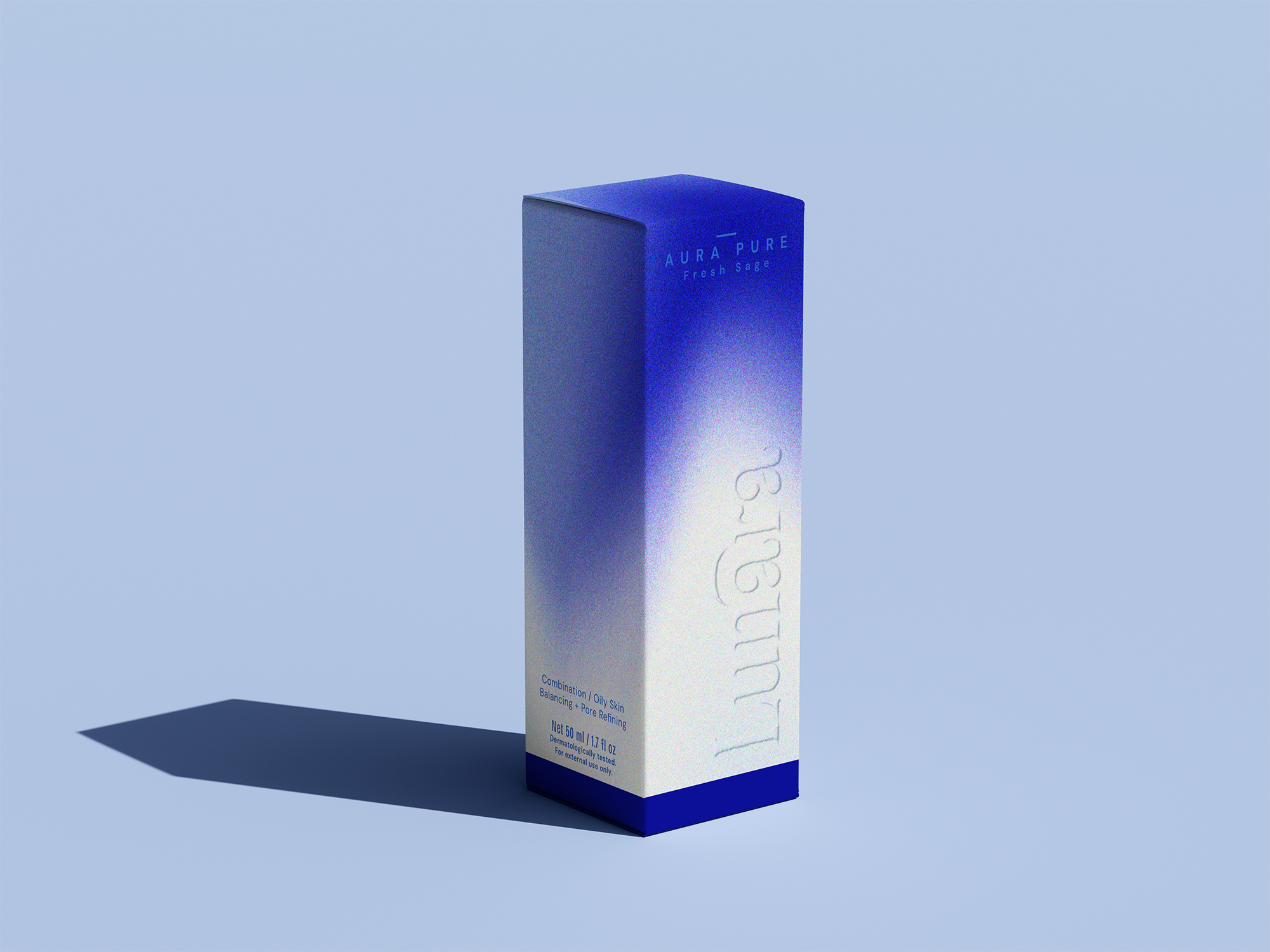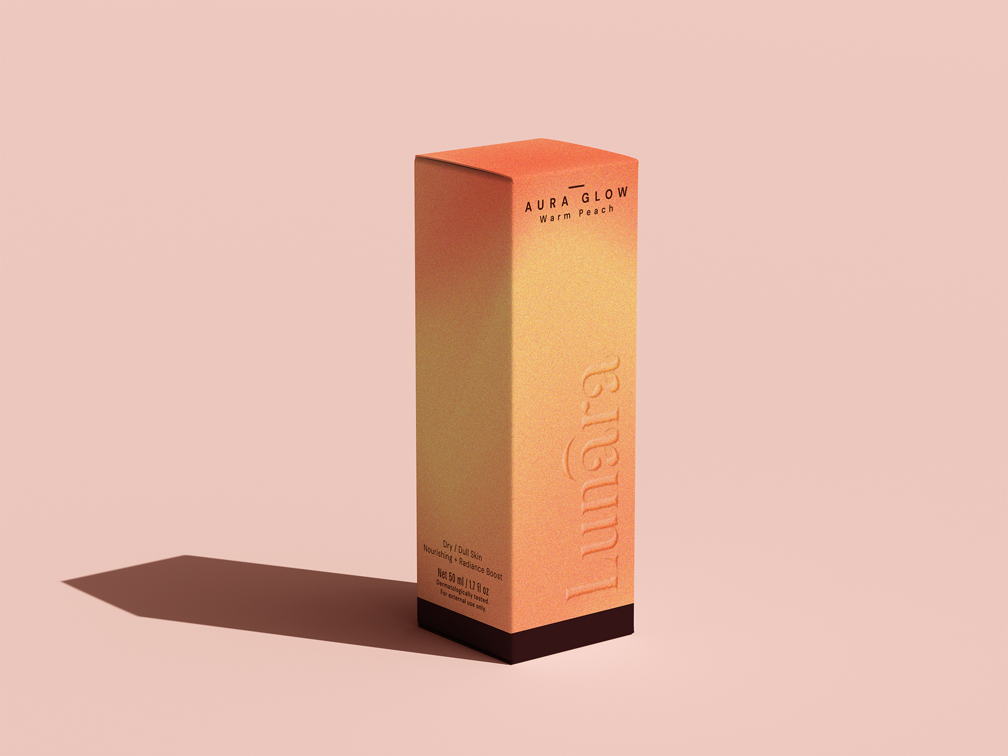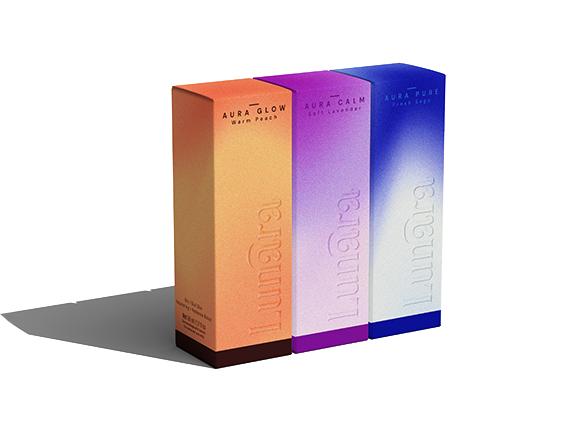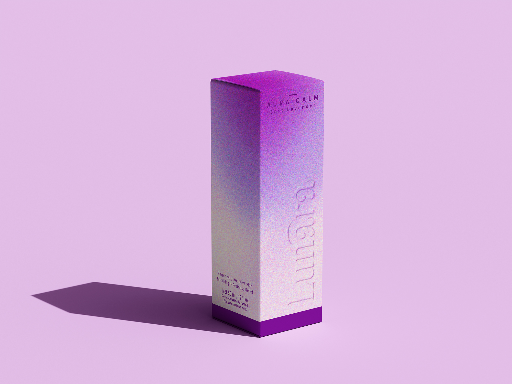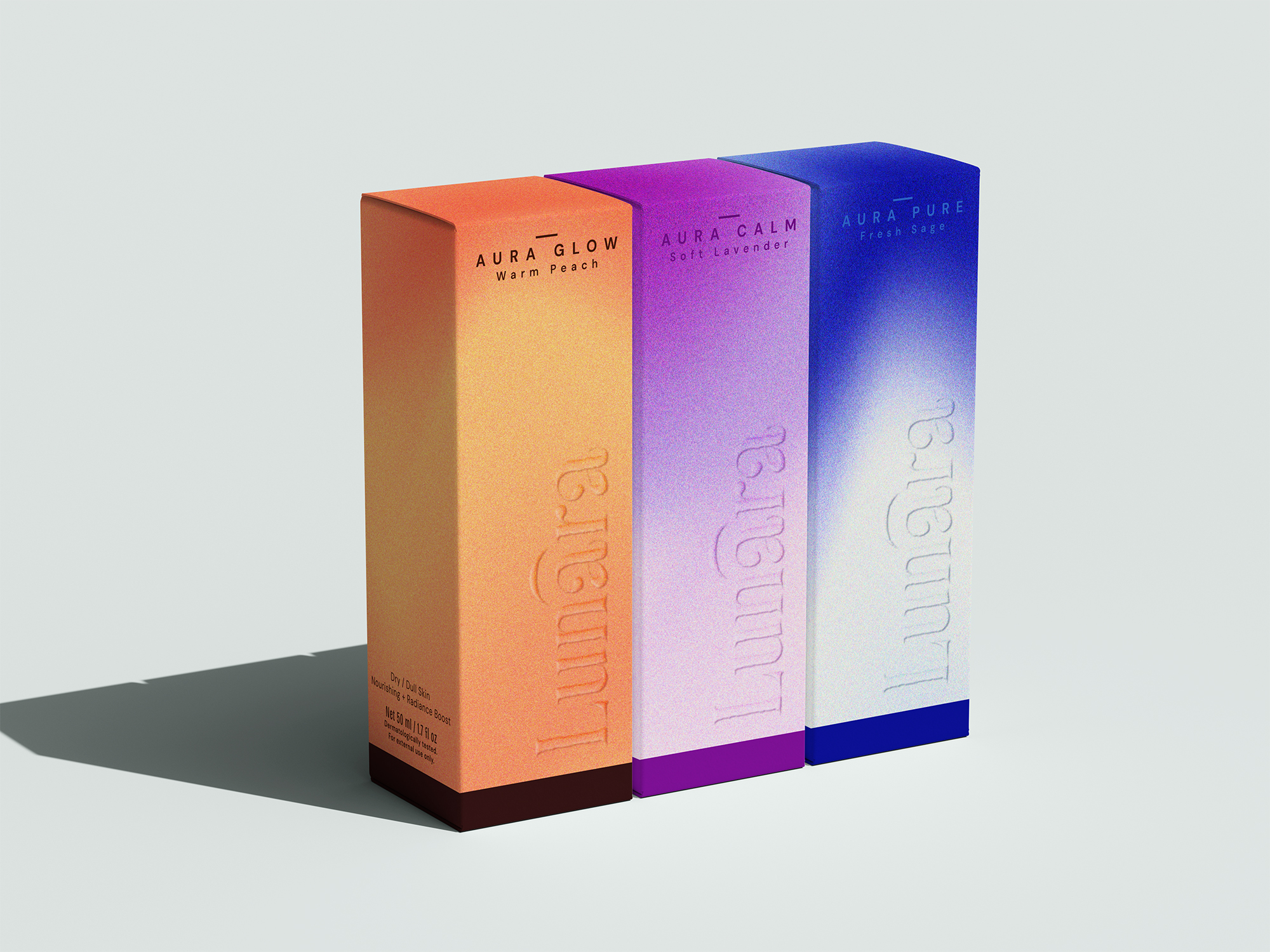 The debut line, LUNARA AURA, was conceived as a harmonious skincare trio, distinguished by softly blended gradient palettes: AURA GLOW in warm peach for dry or dull skin, AURA CALM in soft lavender for sensitive skin, and AURA PURE in fresh sage for combination or oily skin.